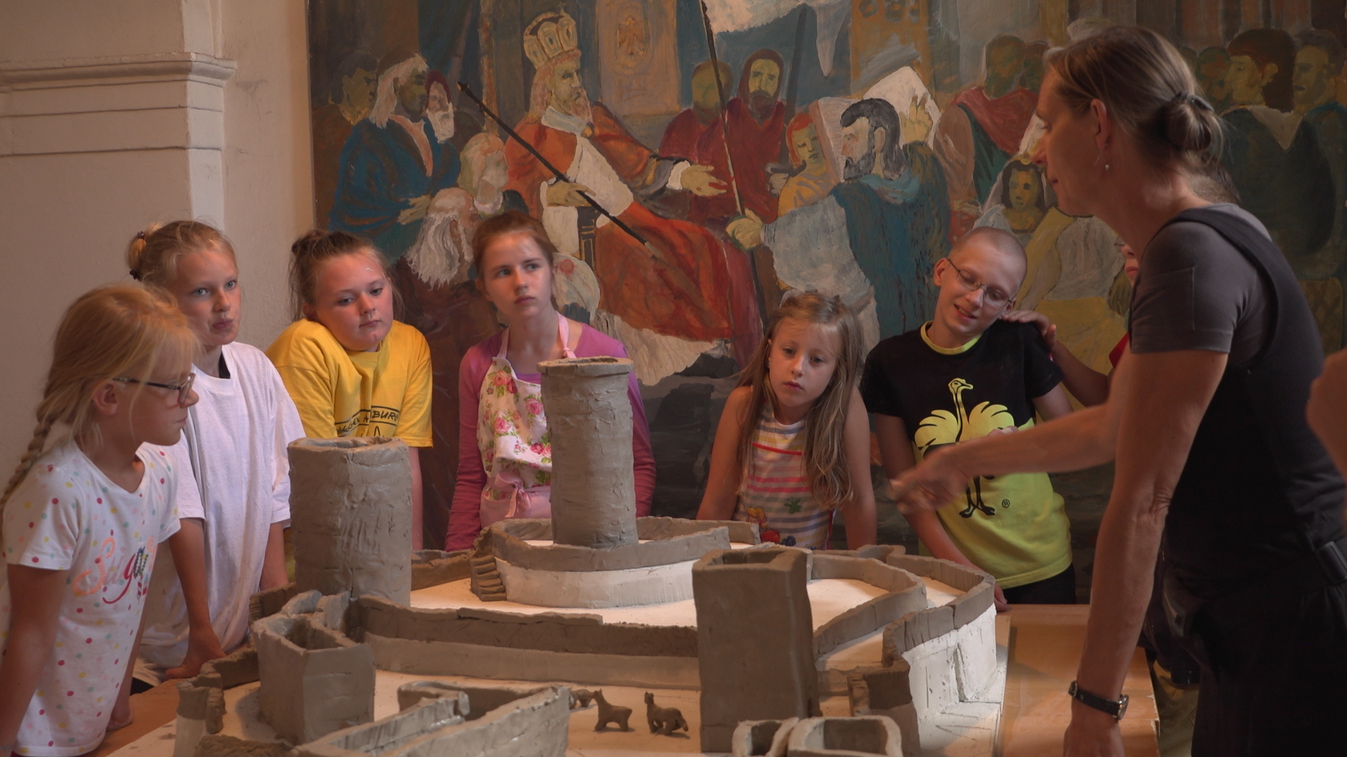 „Wir bauen eine Burg“ war ein zweiwöchiges Projekt der Barbarossa-Stiftung in Zusammenarbeit mit dem Schloss- und Kulturbetrieb Residenzschloss Altenburg / Schloss- und Spielkartenmuseum und der Gemeinschaftsschule „Erich Mäder“. Das Projekt wurde vom Bundesministerium für Bildung und Forschung im Rahmen des Förderprogramms „Kultur macht stark. Bündnisse für Bildung“ gefördert. Altenburg war in der Stauferzeit ein mittelalterliches Machtzentrum, beeinflusste die regionale Entwicklung vom Thüringer Wald bis in das heutige Bundesland Sachsen-Anhalt hinein. Wichtige Zeugnisse dieser Zeit sind bis heute erhalten und besonders die Bauwerke prägen das Stadtbild. Das Projekt richtet sich an Schüler der fünften und sechsten Klassen der Regelschulen im Altenburger Land. In spielerischer Form und an authentischem Ort wurden die Schüler in die Welt des Mittelalters eingeführt. Die Dauer des Projektes war vom 5.8.2019 bis 16.8.2019 auf zwei Wochen am Ende der Sommerferien angelegt und startete für die Schüler täglich 9.00 Uhr und endete 15.00 Uhr. Wesentliche Ziele und Schwerpunkte des Projektes „Wir bauen eine Burg“ waren: Stärkung der regionalen Identität das Museum als einen Ort begreiflich zu machen, der zum Leben der Schüler ganz natürlich dazugehört Beseitigung von Schwellenängsten, bei der Beschäftigung mit historischen Vorgängen und dem Besuch von Erinnerungsorten Erlernen von neuen Inhalten und Präsentation dieser vor anderen Schülern Erleben der eigenen Kreativität zur Stärkung des Selbstbewusstseins Zur ständigen Evaluierung und Schärfung des Projektes, wurde sich jeden Tag in einer Abschlussrunde mit den Schülerinnen und Schülern zusammengefunden, und der jeweilige Tag ausgewertet.